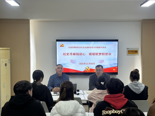 为引导学生党员从学校发展历程中汲取精神力量,淬炼入党初心、强化使命担当,近日,经济管理学院学生党支部组织开展“校史寻根铭初心 砥砺筑梦担使命”主题党日活动。活动特邀亲历学校军校、煤建校及建筑学院三个历史阶段的白海云老师,与经济管理学院党总支副书记崔廷锋及支部全体党员、发展对象一同,共溯峥嵘校史,凝聚奋进力量。