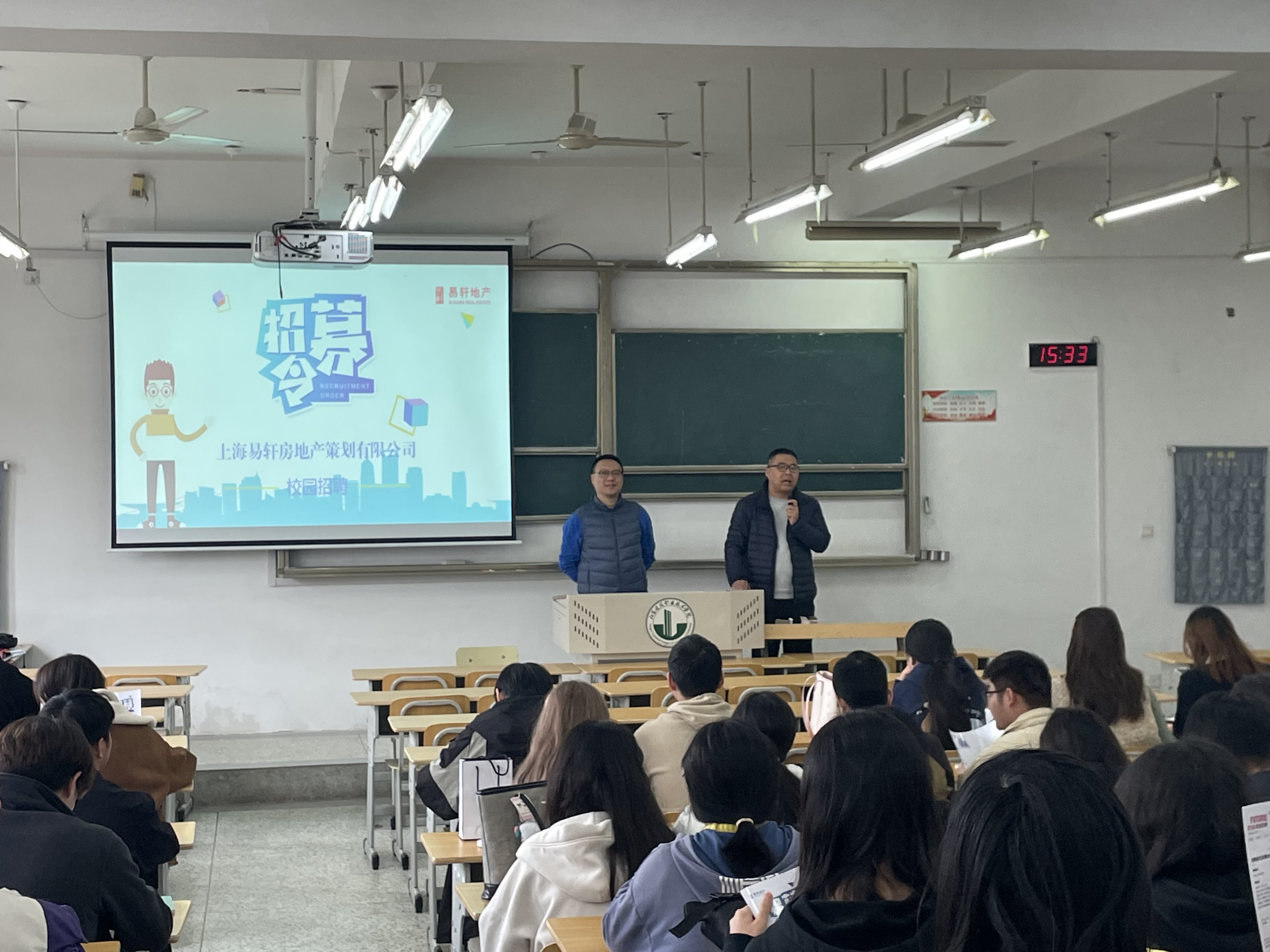 10月24日下午,学院在教3E-201举行了上海易轩房地产策划有限公司宣讲活动。上海易轩房地产策划有限公司培训部赵君、人力资源部马超祥,学院相关领导、教研室主任以及2023级市场营销、电子商务等专业学生参加。