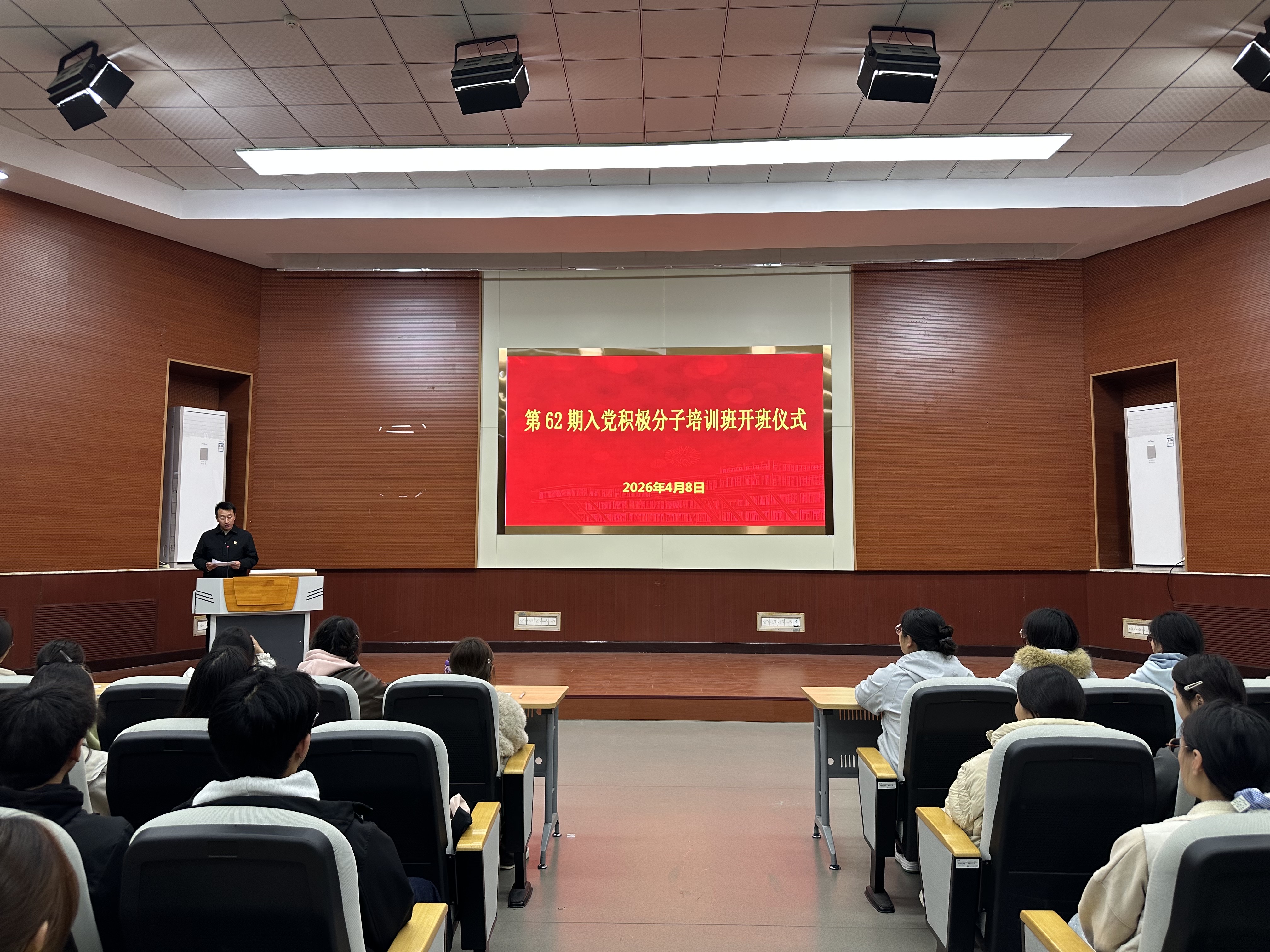 仪式结束后,校党委组织部副部长王凤清以《深入学习党章 筑牢信仰之基——〈中国共产党章程〉解读》为题,讲授开班第一讲,系统解读了党章的地位、历史沿革与核心要义,引导学员扣好入党“第一粒扣子”。